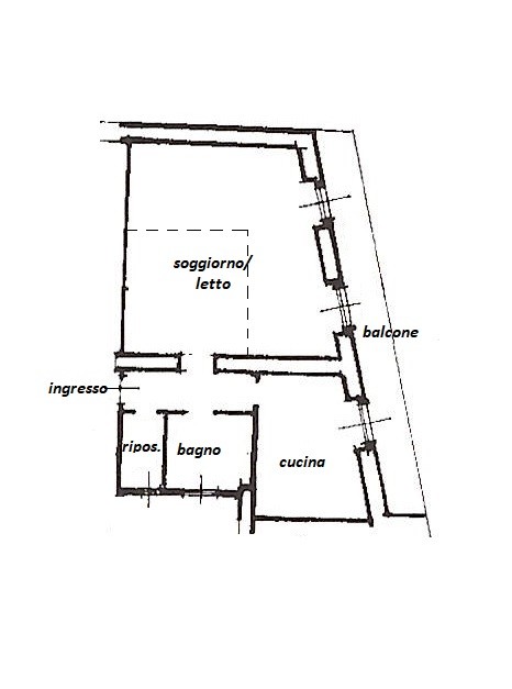 La distribuzione prevede l'ingresso dal vano scala comune tramite il portoncino blindato, ampia zona living con letto matrimoniale soppalcato, cucina abitabile completa di tutti gli elettrodomestici, ripostiglio con attacchi lavatrice e bagno finestrato.